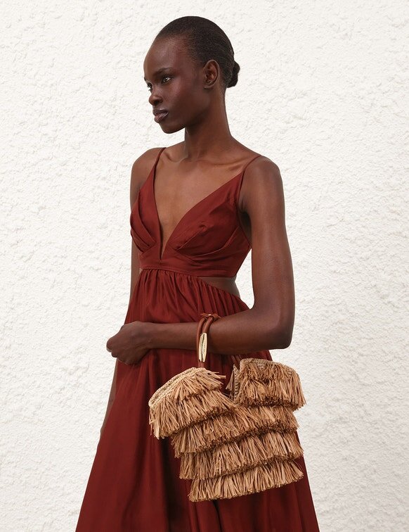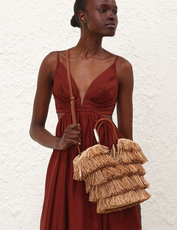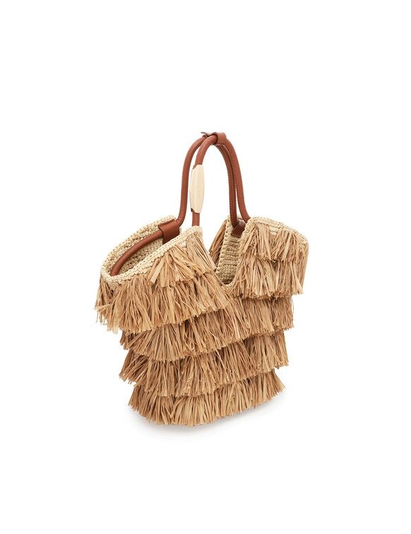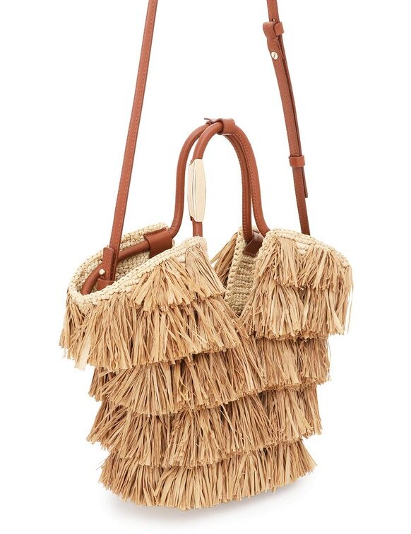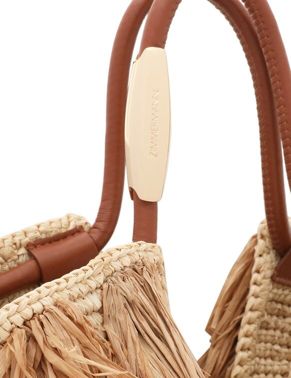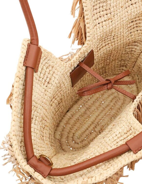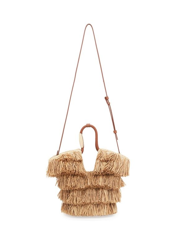 Tissé à la main en raphia, le sac Goldentime est le compagnon idéal pour l’été : sa silhouette s’inspire de l’univers du surf et des formes organiques du paysage marin, tandis que sa poignée tubulaire infinie est ornée de détails métalliques inspirés des planches de surf. Doté d’une bandoulière supplémentaire et orné de franges ludiques en raphia naturel coupées à la main, Goldentime peut contenir tous vos essentiels d’été pour passer sans effort de la plage à la ville.