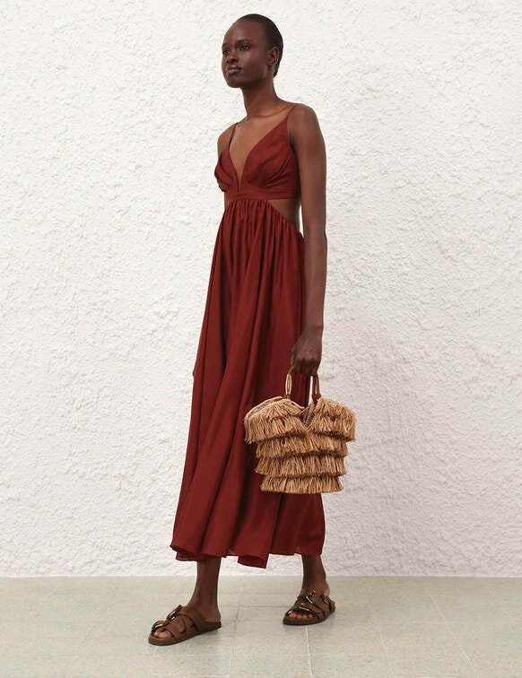 Composition principale : raphiaFabriqué à partir de raphia tissé à la main à Madagascar, l’effilochage naturel et les variations font partie de son caractère. Nettoyez localement avec un chiffon humide ; évitez les nettoyants chimiques pour prévenir la décoloration. Avec le temps, le raphia peut s’assouplir, se décolorer ou perdre de sa rigidité. Pour éviter tout dommage, éloignez-le de l’humidité, des tissus colorés et des Accessoires. Rangez-le dans un environnement sec, dans son sac de protection d’origine.Vérifiez toujours l’étiquette ou la fiche d’entretien pour connaître les instructions d’entretien spécifiques.