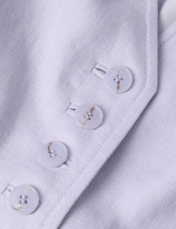 Composition principale : 100 % lin ; Doublure : 75 % viscose, 25 % soieNettoyage à sec uniquement, code F (hydrocarbures uniquement) ;Retirer toutes les garnitures amovibles avant le nettoyage à sec ;Couvrir pour protéger les garnitures ;Repasser à basse température avec un chiffon de protection ;Vapeur légère uniquement ;Ne pas nettoyer localementToujours vérifier l’étiquette ou la fiche d’entretien pour connaître les instructions d’entretien spécifiques.